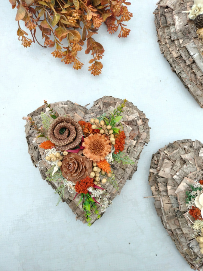 Srdce je zdobené prírodným materiálom. Rozmery 20x20cm. Málo zaťažené. Tovar slúži ako dekorácia.