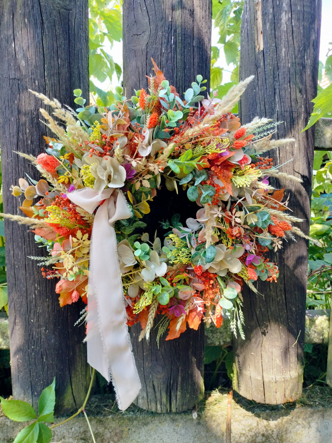 Použitý sušený a umelý trvácny materiál. Priemer 38cm. Tovar slúži iba ako dekorácia.