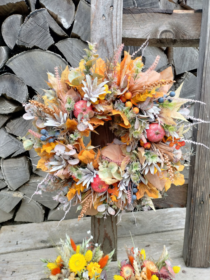 Viazaný z umelého kvalitného materiálu, čiže vydrží viac sezón. Priemer 38cm. Tovar slúži iba ako dekorácia.